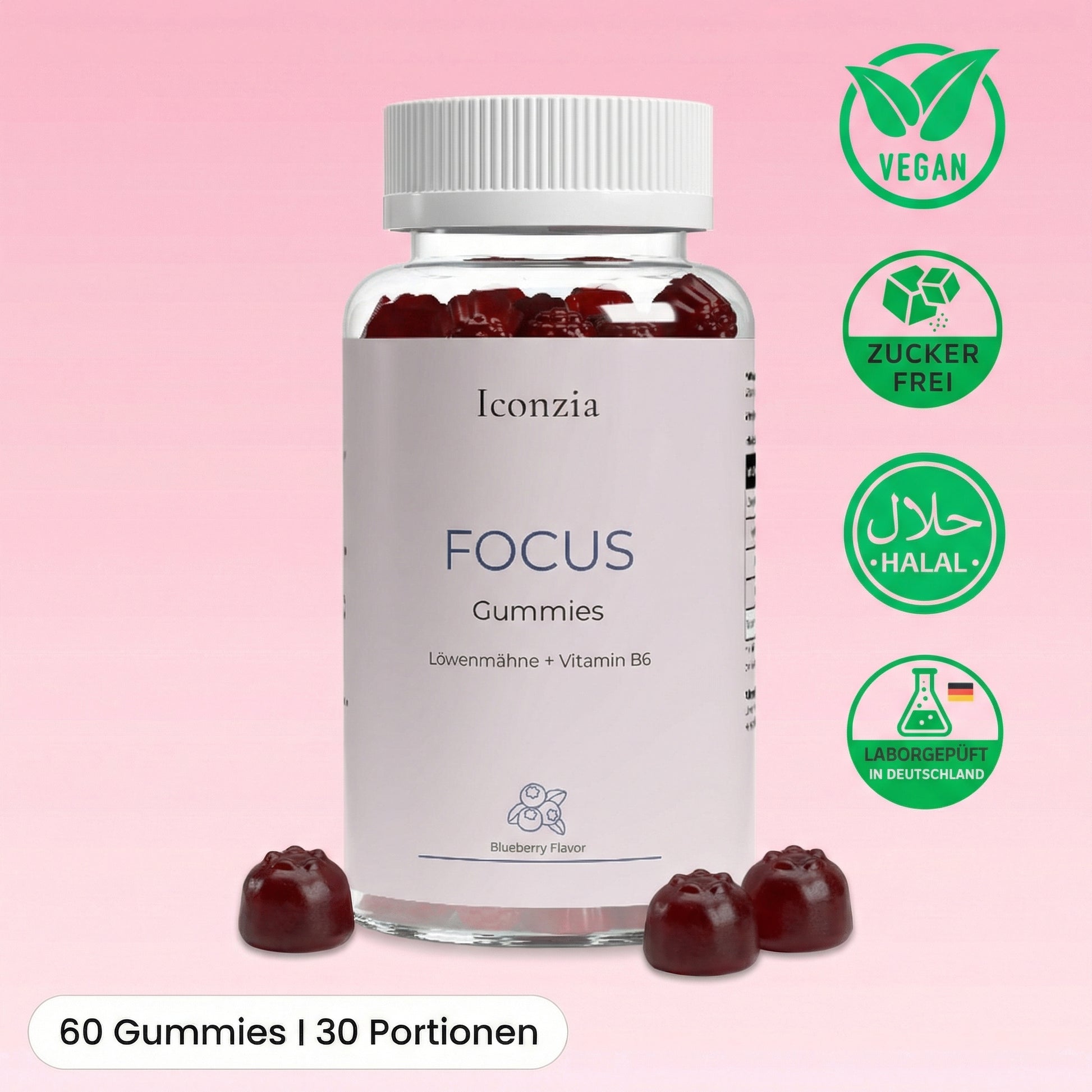 Unsere FOCUS Gummies mit intensivem Blaubeer-Geschmack machen deine tägliche Routine zu einem fruchtigen Moment.
